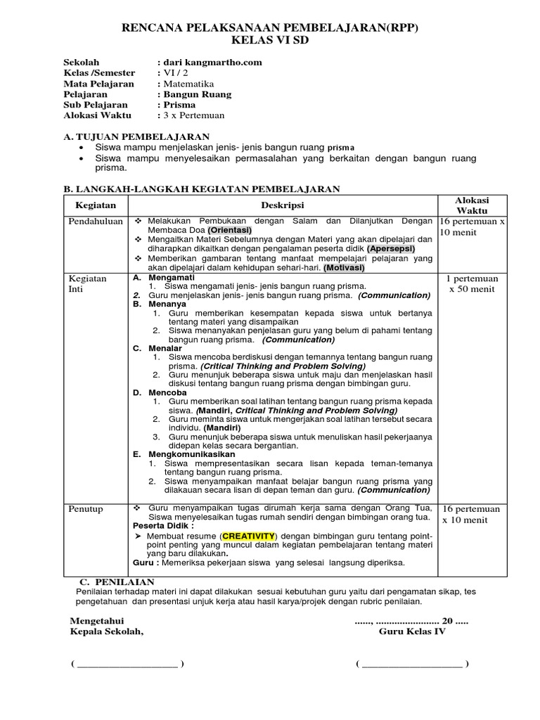 Rpp 1 Lembar Www Kangmartho.com ~ RPP 1 Lembar PJOK Lengkap kelas 1,2,3,4,5 dan 6 SD/MI - antapedia.com. Dimana komponen dari rpp terus mengalami perubahan seiring pergantian kurikulum pendidikan. Hal tersebut tentu saja memberikan banyak efek positif, lebih terasa lagi oleh para guru yang kini bisa memiliki waktu lebih untuk. Savesave rpp 1 lembar mtk 5 kangmartho.com for later. Situs yang hanya membahas rpp 1 lembar dari sd, smp dan sma,smk sesuai surat edaran mendikbud no 14 tahun 2019. Maka rpp disederhanakan menjadi 1 lembar saja yang tetap diintegrasikan dengan literasi abad 21, hots, ppk dan 4c.